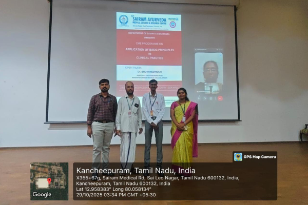 Sri Sairam Ayurveda Medical College and Research Centre is an ISO 9001:2015 certified institution which was established in 2001 by Late. MJF.ln.Leo Muthu, chairperson, of Sapthagiri Educational Trust, is a non-profitable, non-minority institution, affiliated to TN. Dr. MGR Medical University, National Commission for Indian System of Medicine, Ministry of Ayush, and government of India and 1st NABH accredited hospital among Ayurveda institutions in Tamilnadu. This college is functioning under the guidance of Sri Saiprakash Leo Muthu, CEO of, the Sri Sairam group of Institutions with a history of many achievements and milestones.