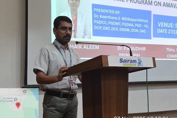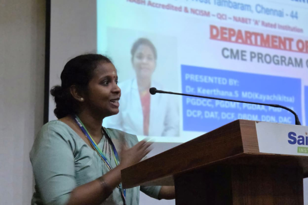 The Department of Kayachikitsa organized a Continuing Medical Education (CME) programme on 27th November 2025 at SSR Hall. The session was delivered by Dr. Keerthana S, who presented an in-depth and clinically oriented lecture focusing primarily on Rheumatoid Arthritis.