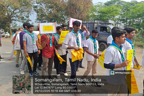 The Meendum Manjappai campaign was successfully conducted on 29/12/2025 and 30/12/2025 in Poonthandalam, Nadaverapattu, and Somangalam villages, which are the adopted villages of our institution.