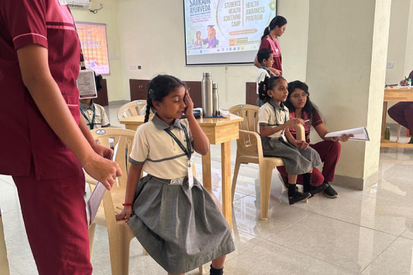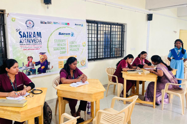 Sri Sairam Ayurveda Medical College & Research Centre (SSAMC) organized a Health Screening Camp and Health Awareness Program for the students and staff of Sairam Leo Muthu Public School, Medavakkam on 2nd and 3rd March 2026.